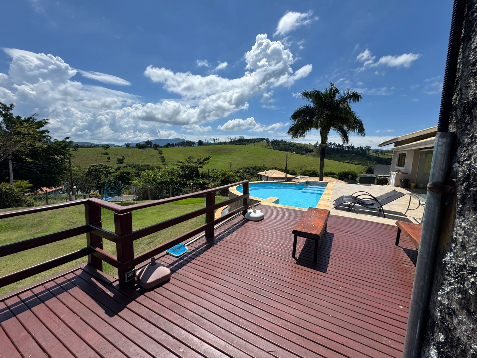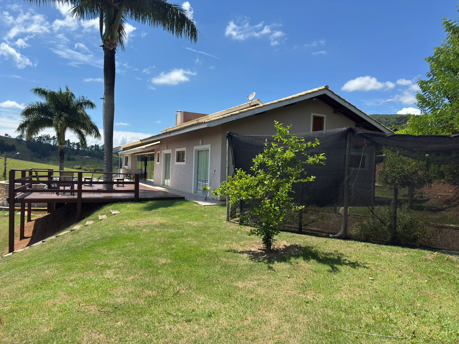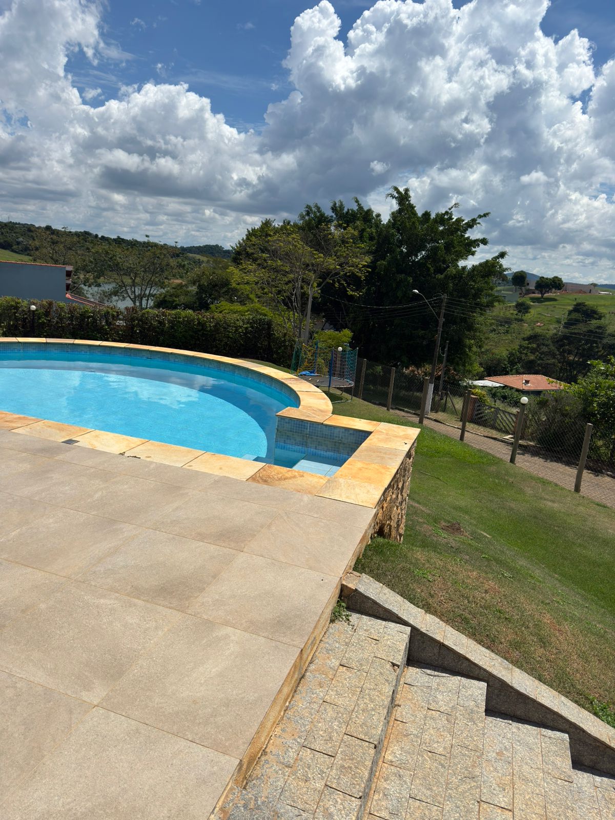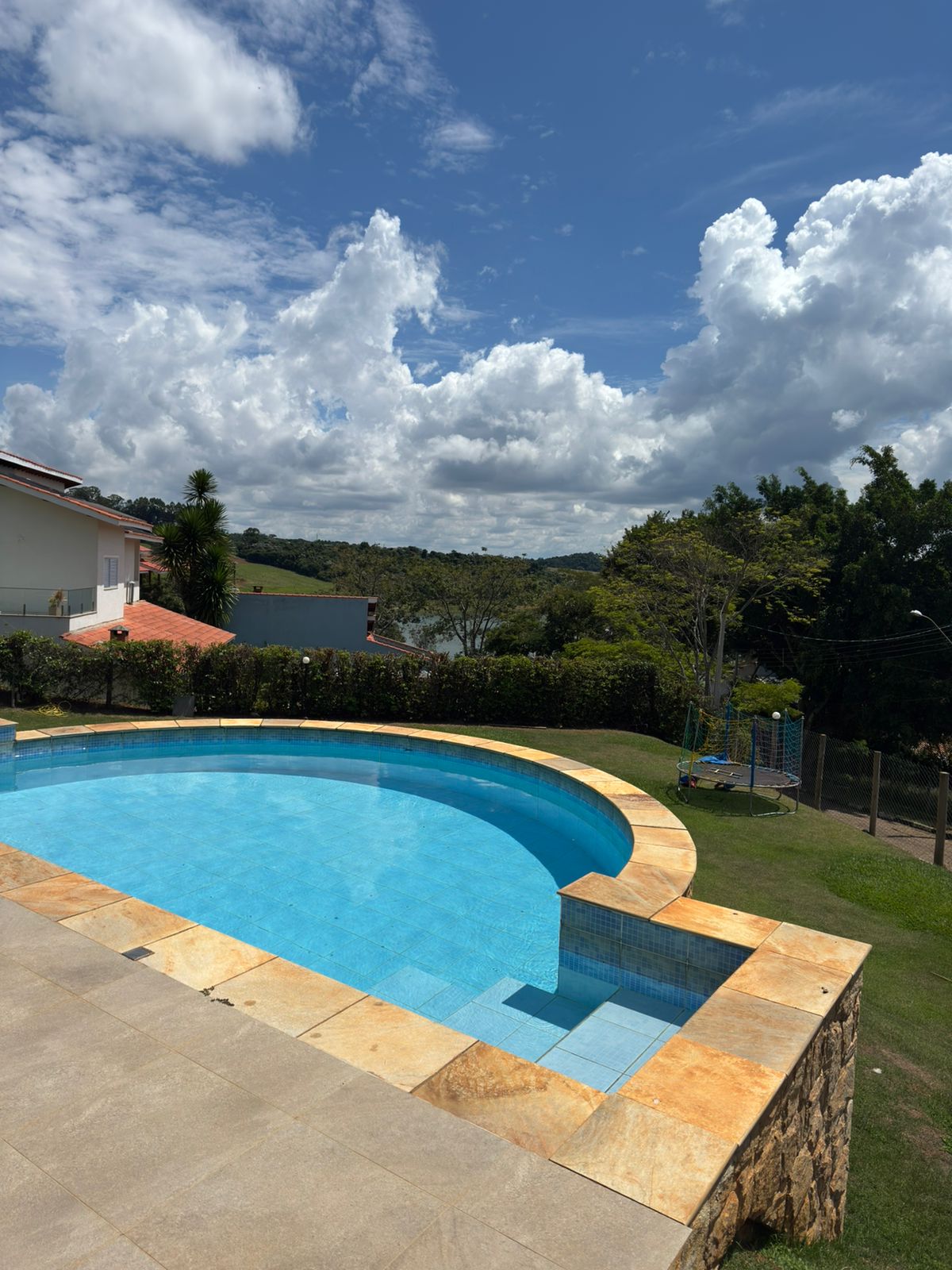 • Piscina elegante rodeada de quintal com gramado, ideal para lazer e contemplação