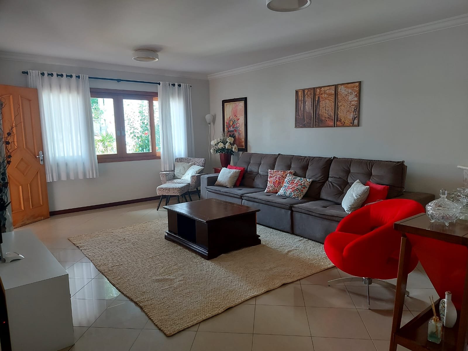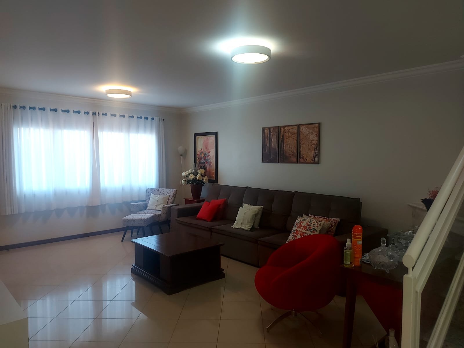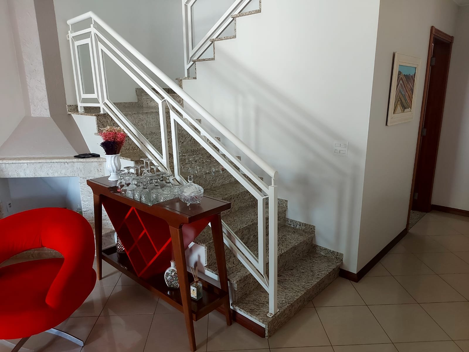 - Pisos: inferior com sala de TV, sala de jantar, lavabo, lareira e escritório