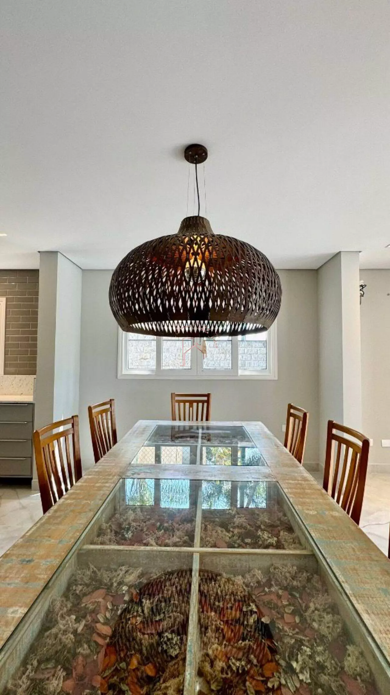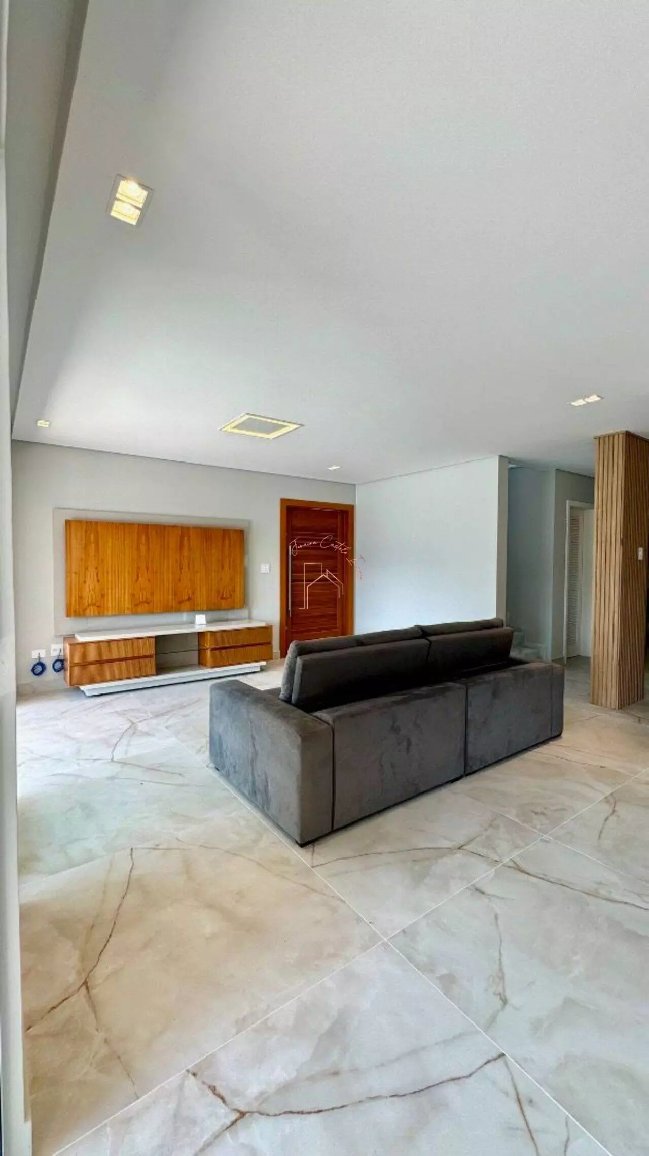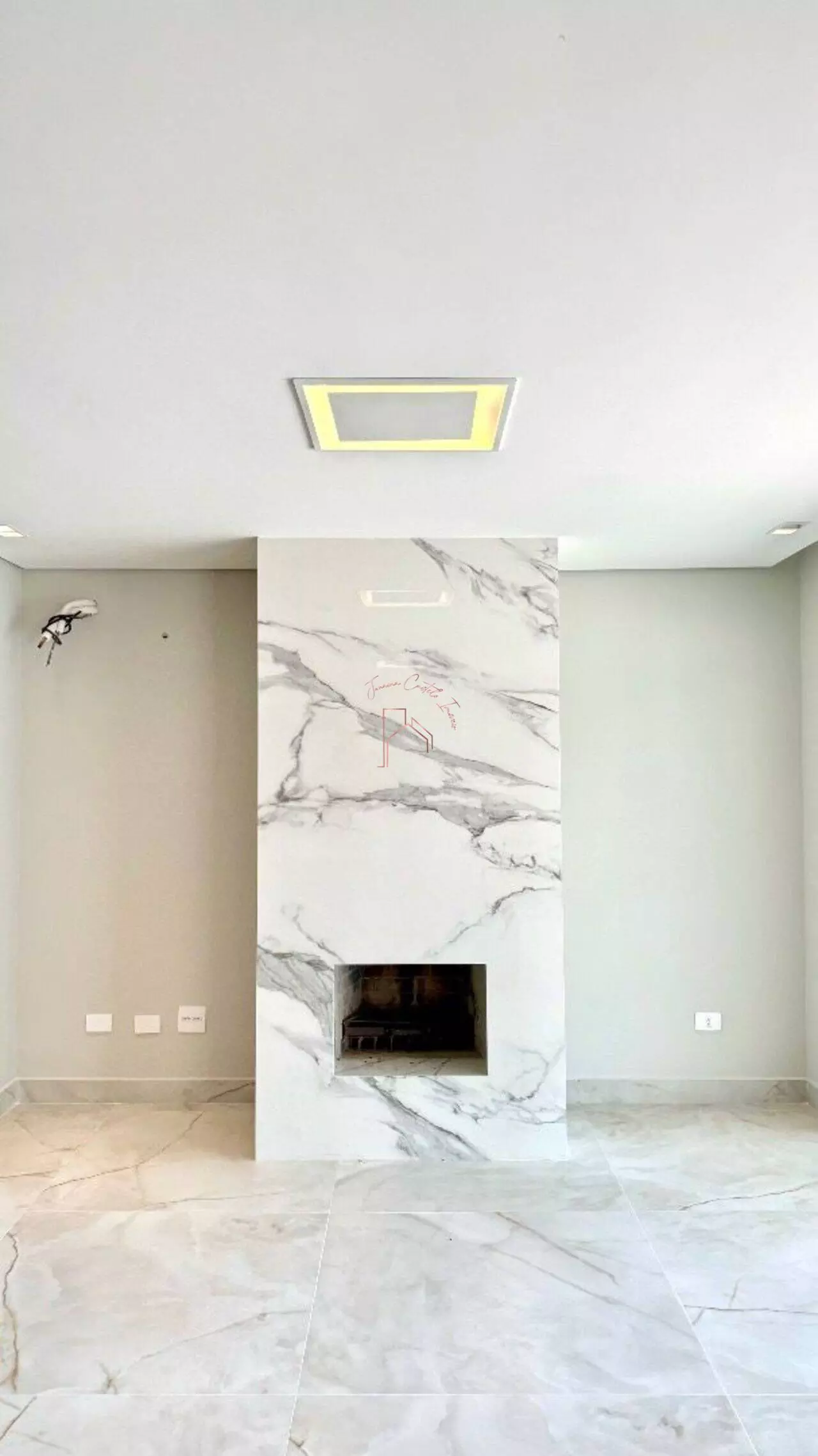 O living é composto por salas de estar, jantar e TV, integradas à cozinha e à área gourmet, criando ambientes amplos e iluminados. A sala com lareira garante momentos acolhedores em dias mais frios.